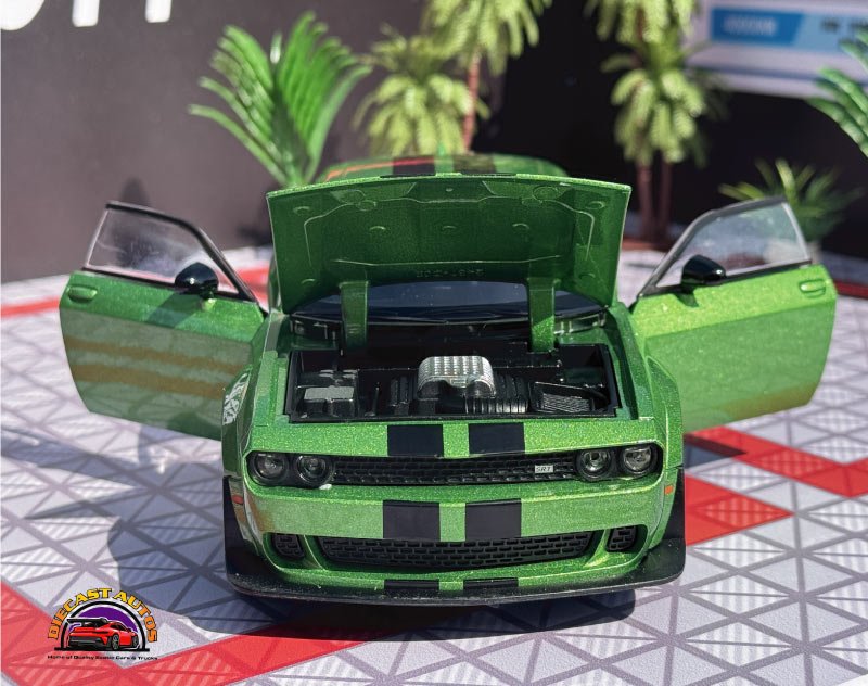 The Dodge Challenger Hellcat 1:24 Scale Diecast Collectible Model captures the essence of one of the most iconic muscle cars to ever hit the streets. Designed with precision and attention to detail, this model replicates the fierce and elegant design that made the Hellcat a favorite among car enthusiasts worldwide. Whether you’re a collector of diecast models or simply a fan of Dodge vehicles, this piece is perfect for showcasing your passion.